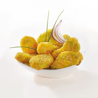 Made from a variety of delicious vegetables like corn, carrots, parsnips, peas, turnips, onions and broccoli. The small Vegetable Nuggets are enveloped in a crispy breading of cornflakes.