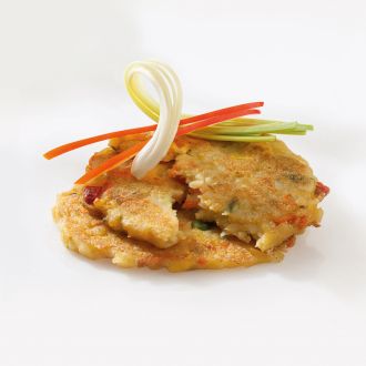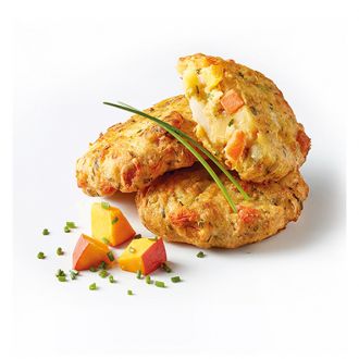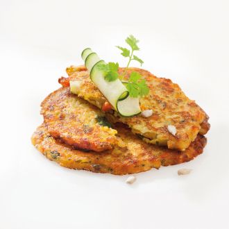 Crispy vegetable pancakes, made of qualitiy potatoes, zucchinis and carrots. Refined with value-added sunflower kernels and fresh herbs. Pre-fried in unhydrogenated, 100 % vegetable fat.