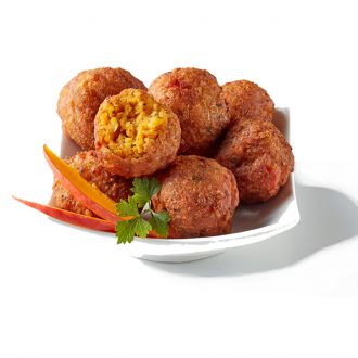 Our Vegetable and Rice Balls Asia surprise in form and taste. The exotically seasoned balls feature crunchy Asian vegetable mix, fine dates and hot spices. Combined with a sweet-hot dip, the Rice and Vegetable balls Asian Style are the perfect supplement for every finger food buffet.