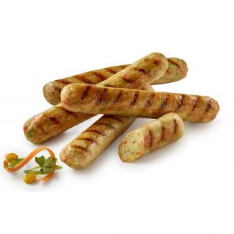 Vegan sausage made from 59 % vegetables such as carrots, parsnips, peas, sweetcorn, onions and kohlrabi. Flavoured with spices and with an edible casing.